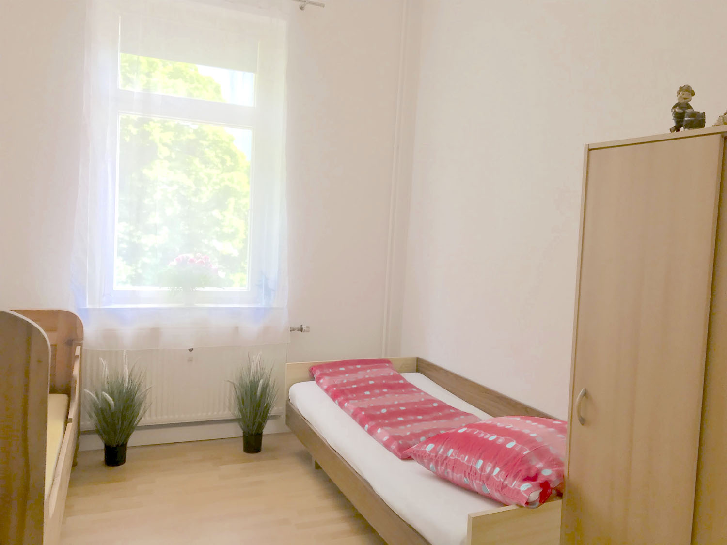 Geräumige Ferienwohnung im 2.OG in Meerane. 1 WZ, 3 SZ, komplett ausgestattete Küche und Balkon mit schönem Ausblick. Ideal für Familien oder kleine Gruppen, die Platz und Ruhe suchen.
